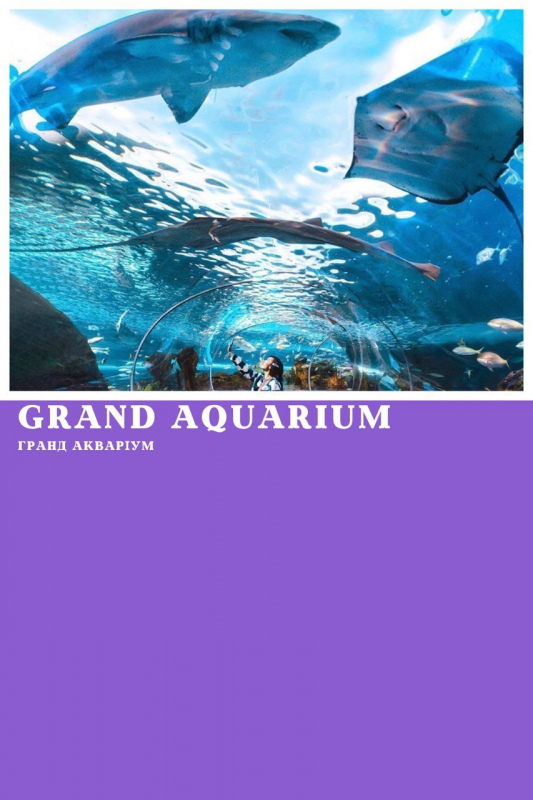 Акули, скати та тисячі риб — просто на відстані кроку! Гранд Акваріум — захват гарантований. Записуйтесь вже зараз!